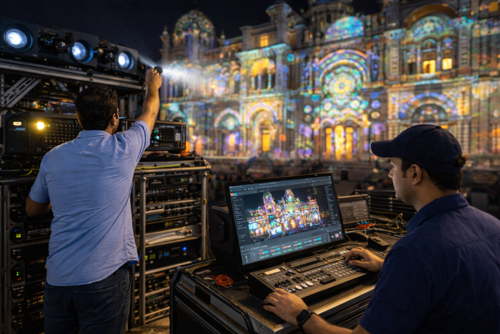 Our projection mapping solutions combine creative design, powerful projection systems, and precise calibration to deliver seamless and impactful visual displays. Whether for live events, corporate presentations, exhibitions, or permanent installations, we ensure every project is executed with accuracy, creativity, and technical excellence.